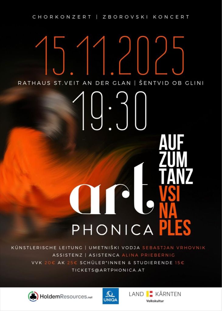 Für das heurige Programm haben wir den Titel „Auf zum Tanz – vsi na ples“ gewählt. Das Projekt vereint Chorliteratur aus verschiedenen Epochen und Genres – von der Renaissance über die Romantik bis zur zeitgenössischen Musik – und umfasst sowohl slowenische als auch österreichische Volkslieder, um die verbindende Kraft des Tanzes